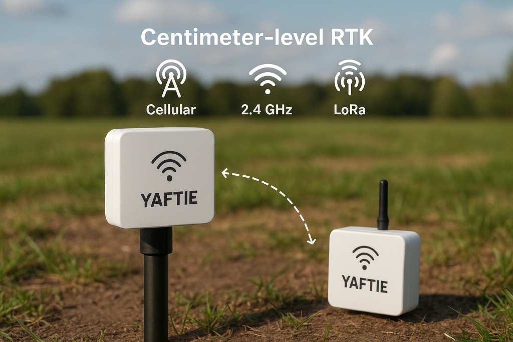 Along with implementing support for NTRIP Casters (hopefully some exciting news coming and another future blog post!) we are also developing a standalone system that allows us to deploy a Yaftie board as a local RTK base station which then broadcasts the required RTCM data over a low power RF link to a Yaftie rover which selectively listens when it expects to be able to hear the base station.